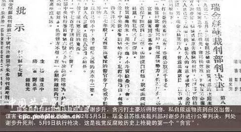 2017年6月27日,《人民日報》刊登了「毛澤東力主嚴處蘇區‘第一個貪官’」的文章,其中蘇區“第一個貪官”指的是瑞金葉坪蘇維埃主席謝步升,文章介紹,處決謝步升,打響了黨史第一次大規模反腐倡廉鬥爭的第一槍。80多年前的蘇區有哪些反腐大案,是什麼腐蝕了蘇區幹部,蘇區又採取了哪些打擊腐敗的手段呢?