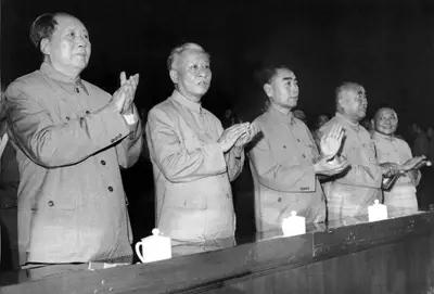 1964年,毛澤東、劉少奇、周恩來、朱德、鄧小平出席中國共產主義青年團的第九次全國代表大會(資料圖)