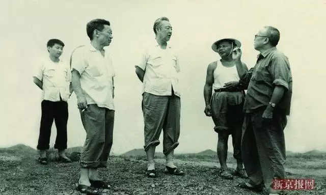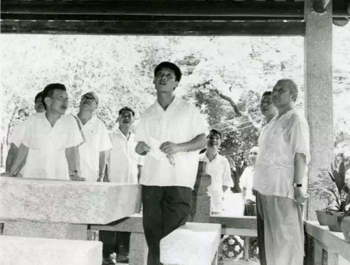 1978年習近平(前中間)隨習仲勛在廣東考察