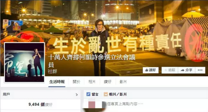 何詩詩早前指出本港政壇「要有新氣象,如果真係冇人選,真係好需要我,我可以考慮」。之後馬上有人在facebook設立咗一個「十萬人齊撐何韻詩參選立法會議員」,到今早已經有逾9,460個like,更有人留言話阿詩應該選埋特首。