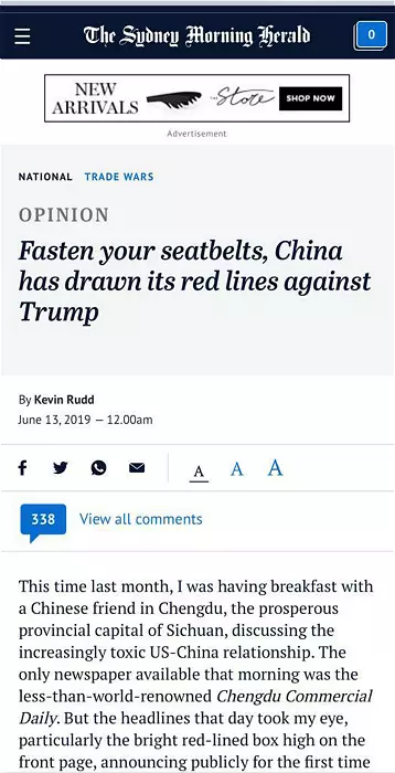 陸克文在澳洲《悉尼先驅晨報》上的文章。
