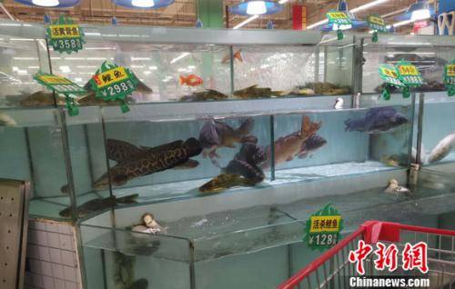 北京一家大型超市的水產區,冰鮮大帶魚是45.8元一斤,鱸魚35.8元一斤,鯉魚29.8元一斤,草魚12.8元一斤,紅鰱魚是17.8元一斤。工作人員告訴記者,「現在河鱸魚都35塊了,前一段才32元。」