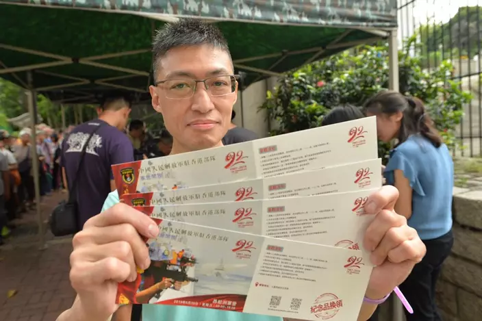 解放軍駐港部隊本月29、30及7月1日,先後開放石崗、新圍及昂船洲軍營予市民參觀,門票早上在5個軍營外免費派發。