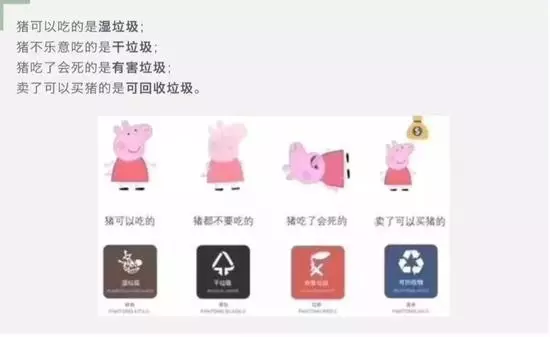 一番講述下來,見各外省人士仍如聽天書,傳說中能把大閘蟹吃完再拼起來的上海朋友,繼續發揮解剖學家精神,推出簡明垃圾分類教程——「豬四分論」,如下圖所示。