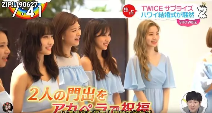 TWICE日前因私人行程遠赴夏威夷,其實是要出席一對日本夫婦的婚禮。因為新娘是ONCE,TWICE收到了新郎「希望TWICE驚喜現身」的委託,所以就以伴娘團的身份驚喜現身婚禮。成員們都十分緊張,但多賢更是零捨緊張,因為她要以日語說出祝賀語,因此事前不停向日本成員請教發音,一直練習。