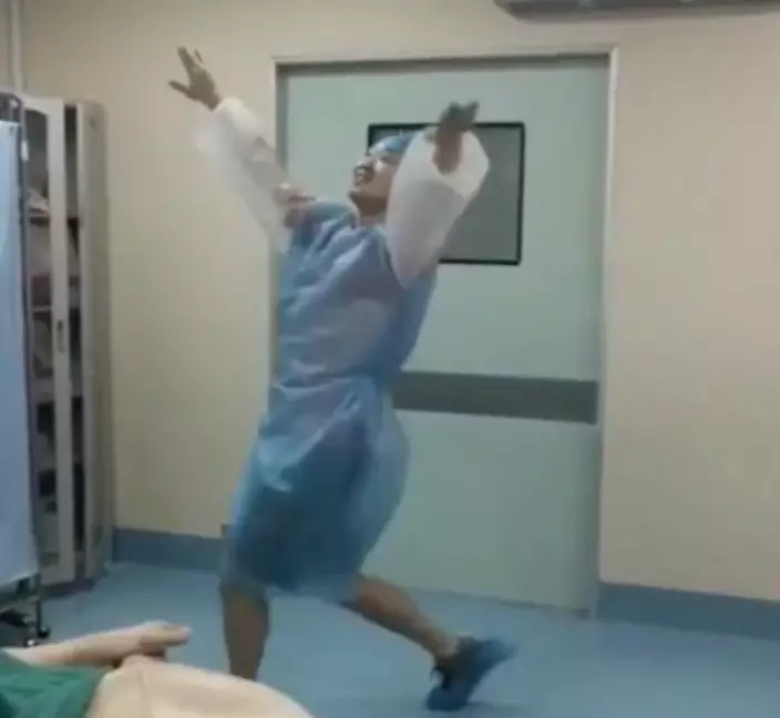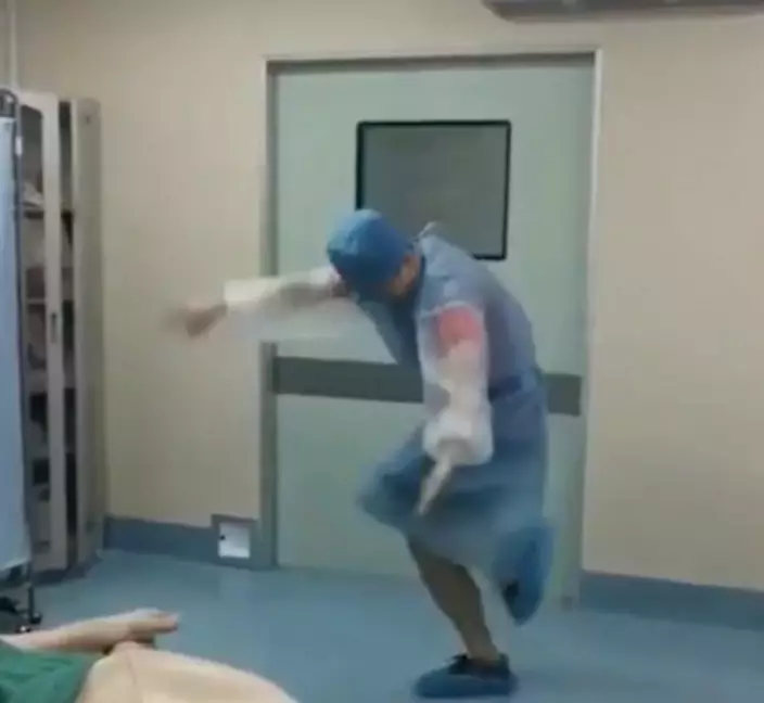 海南一名男子為了分擔妻子分娩的痛苦,於是在產房大跳民族舞,分散妻子的注意力。影片截圖