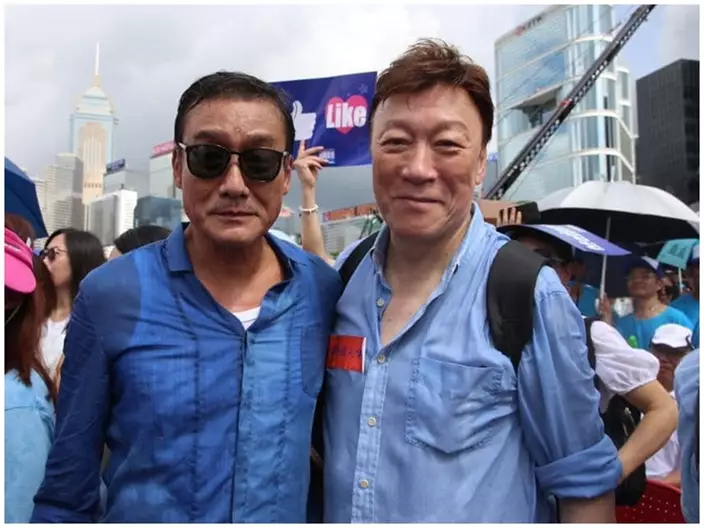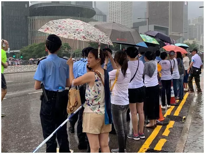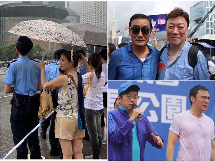此外,藝人陳欣健也有現身、陳百祥亦有拍片支持。雨勢加大後,有大批集會人士離開,也有人為警察撐傘。