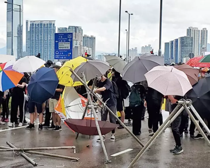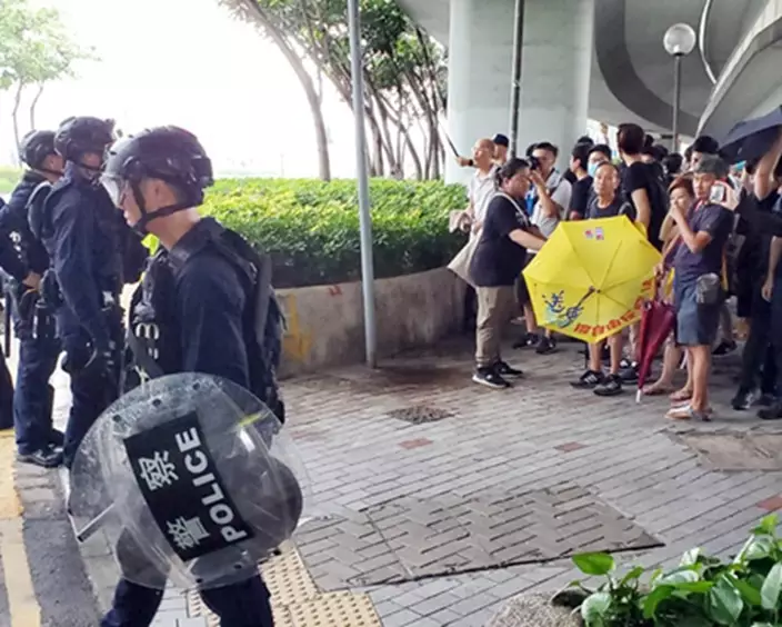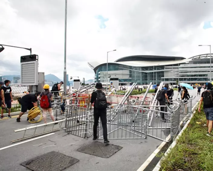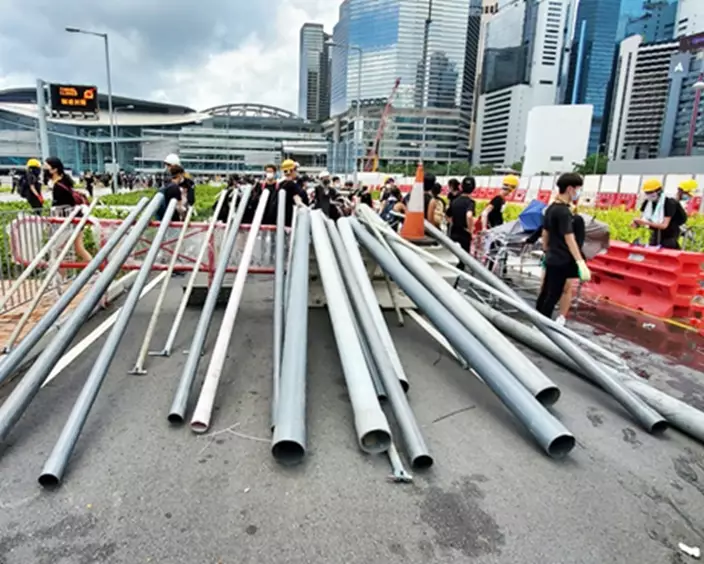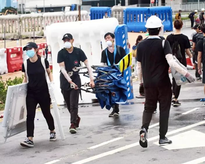 早上9時許,原先在立法會大樓對出的迴旋處聚集的一批示威者,突然有人將多個鐵馬和大型垃圾箱推前向,將防線進一步推前。速龍小隊當時在龍匯道和分域碼頭街交界戒備。雙方對峙一輪後,警方到早上10時半左右,撤走部署在金鐘龍匯道的警員。