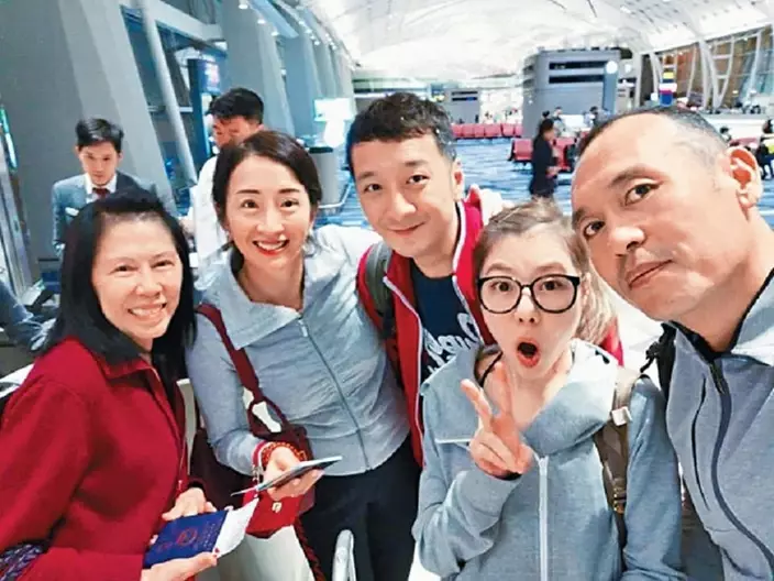 今年農曆年,戴辛尉孖男友,跟梁佩瑚(左二)及其夫郭雲飛等,一家人飛去馬來西亞沙巴度歲。
