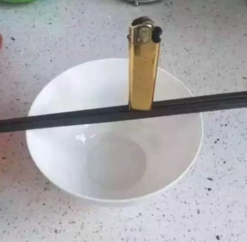 原PO日前在微信朋友圈上傳一張照片,並PO文解釋「公司新來女(同事)請我吃飯,我上廁所回來就這樣了,這是什麼意思啊?在線等,挺急的!」畫面中可見一個白色瓷碗上放了一雙筷子,筷子上又擺了一個直立的打火機,讓原PO看得一頭霧水。