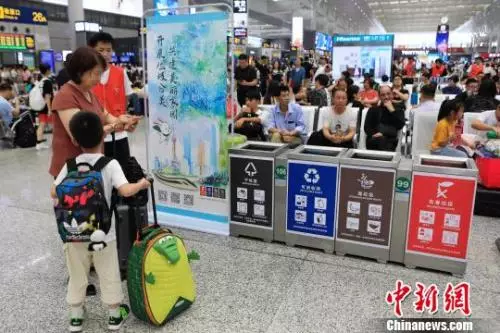資料圖:鐵路上海虹橋站候車室內宣傳垃圾分類知識。