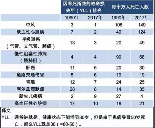 而2017年,人類的主要疾病負擔來源於慢性非傳染性疾病,排名第一的竟然是「中風」。