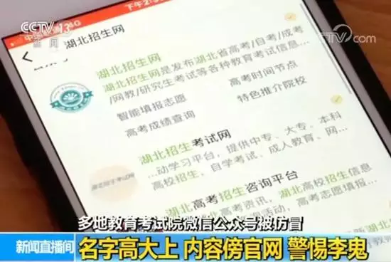 大量仿冒官微 易導致招生騙局