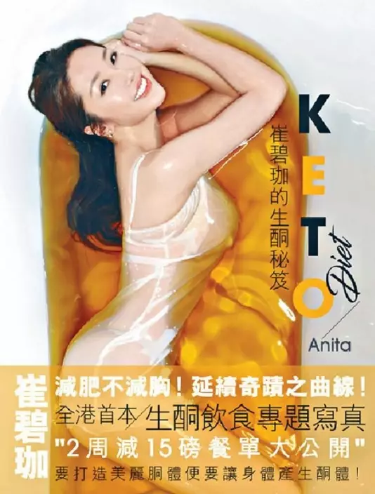 憑36G澎湃身材聞名的崔碧珈(Anita),本身是工商管理碩士的她,有樣有身材外兼有腦,加上擁有健身教練牌,繼16年今年書展再接再厲推出《崔碧珈的生酮秘笈》,講明不再單靠性感做賣點,決定公開多年來絕密減肥秘方,更以身犯險先激增15磅,再挑戰用生酮減肥法兩周內勁減,幸好人瘦胸不瘦。寫真集製作費達200萬,更揼本拉隊到東京取景,Anita最愛的女僕造型一輯,亦花30萬日圓(約兩萬港元)封超級巿場4小時極速完成,難怪她形容視寫真集如親生仔一樣緊張,下半年更會帶新書去世界各地巡迴宣傳。