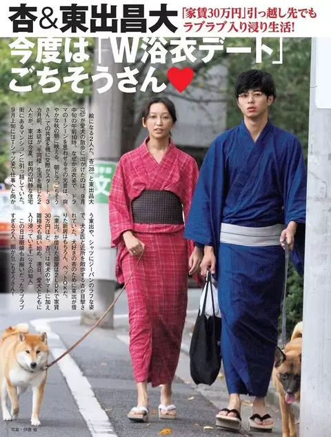 今年初渡邊杏被雜誌爆料新年在男方老家過,夏天起又傳出兩人已經同居。但呢pair愛得大方,常常被傳媒拍到一起遛狗、散步。