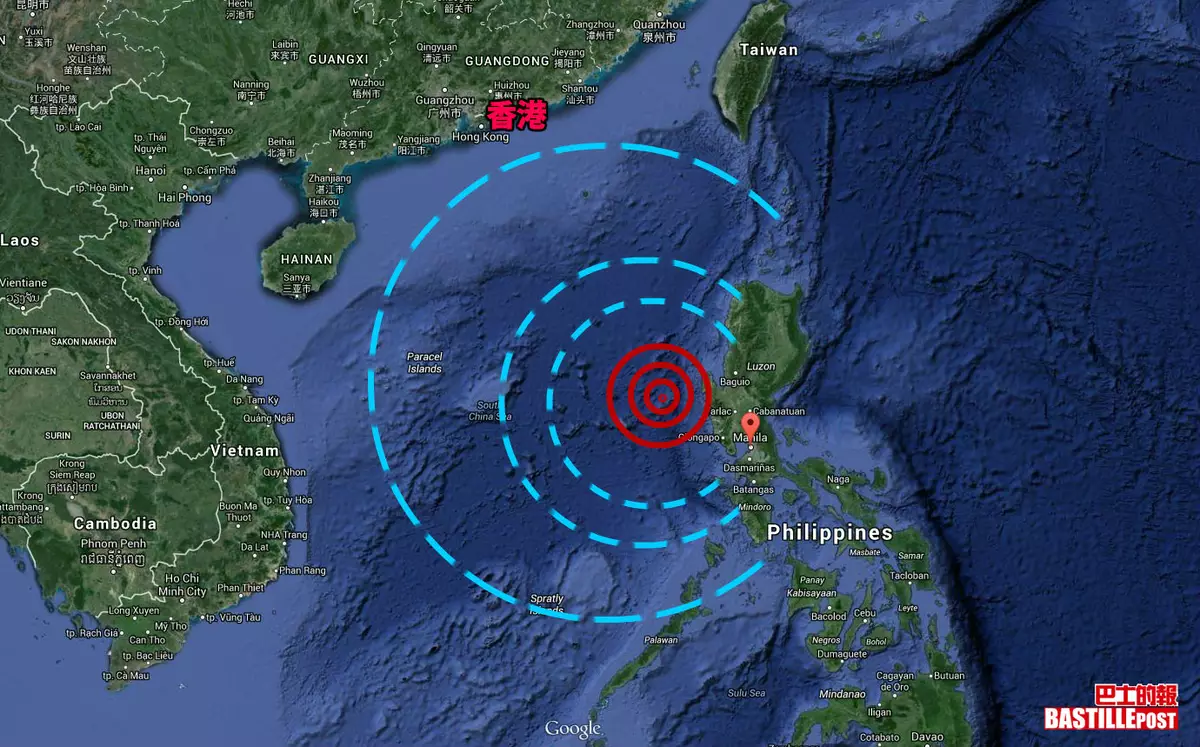 莫慶炎指,如果馬尼拉海溝發生地震引發海嘯,有機會影響香港。設計圖片
