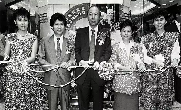 80年代謝瑞麟珠寶店的新店開幕,邀請到前聯交所主席李福兆(中)出席。