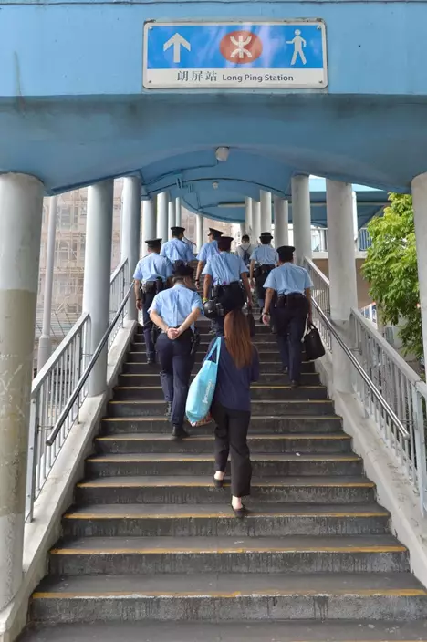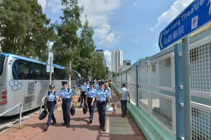 目前元朗市面平靜,警方今午在元朗市內巡邏,而元朗警署已存放大量鐵馬,有警車停在原定集會起點水邊村遊樂場,惟暫時未見遊樂場設有警方鐵馬。