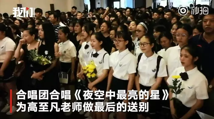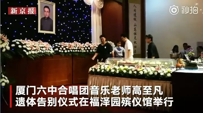 「每當我找不到存在的意義,每當我迷失在黑夜裡,夜空中最亮的星,請照亮我前行。」福建省廈門第六中學的合唱團的歌聲在7月21日,響徹了紀念音樂老師高至凡的追思會。眾人手執鮮花,一邊高歌,陪伴他走完最後的一程。