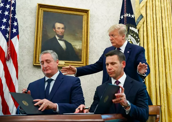 特朗普周五在簽署儀式上說,這是一項里程碑協議,將讓土狼和蛇頭不能再進行偷運人蛇的勾當。他指的是運送數千非法移民經由墨西哥到美國南部邊界的那些人。
