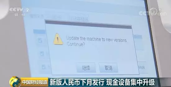 在一台中型清分機上,點擊軟體升級,半個小時後,機器內部的識別鑒偽模塊就完成了更新,可以讀取和識別新版人民幣。