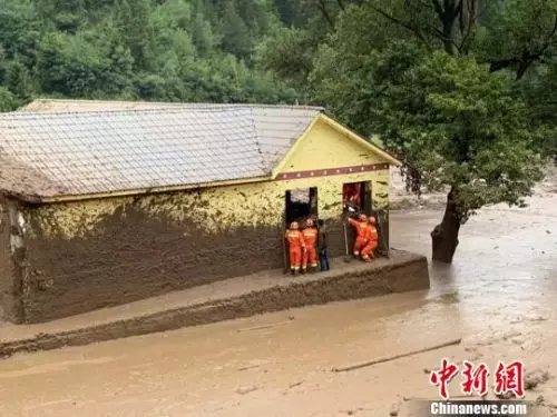 7月29日凌晨零時許,受強降雨影響,甘肅迭部縣達拉鄉次哇村發生山洪災害。圖為消防在現場搶險救災。甘南消防供圖