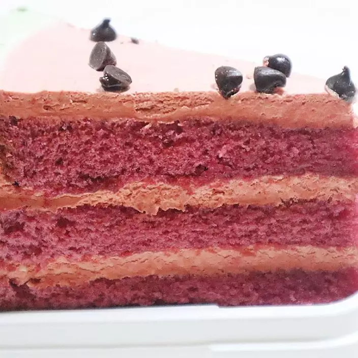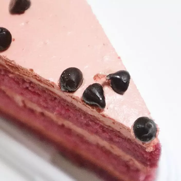蛋糕表面也特意撒上一些朱古力粒,用意模仿西瓜的籽,有畫龍點睛之效。一個的分量不算太多,用來當飯後甜品或是宵夜都很適合。售價3200韓圜($22),在CU便利店獨家發售。