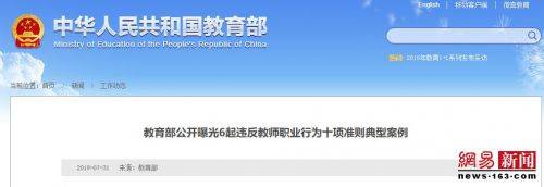 7月31日,教育部曝光了近期督促地方和學校查處的6起違反教師職業行為十項準則典型案例。