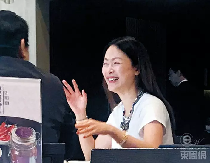 淡出娛樂圈多年嘅Eileen,同台灣富商老公飲茶撐枱腳,夫妻感情恩愛。(《東周刊》圖片)