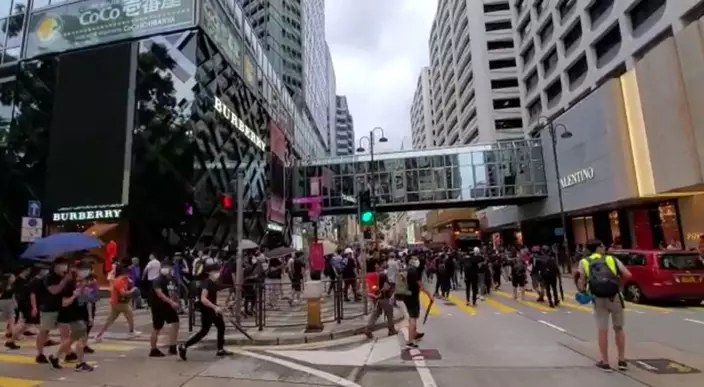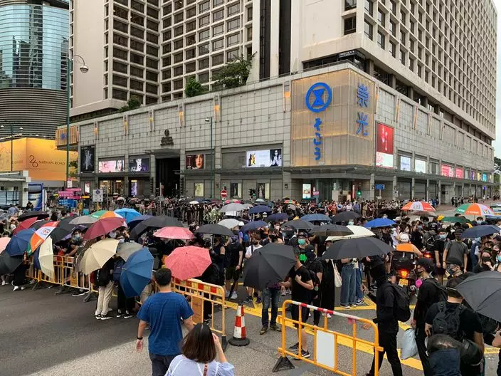 示威者佔據海港城外廣東道。