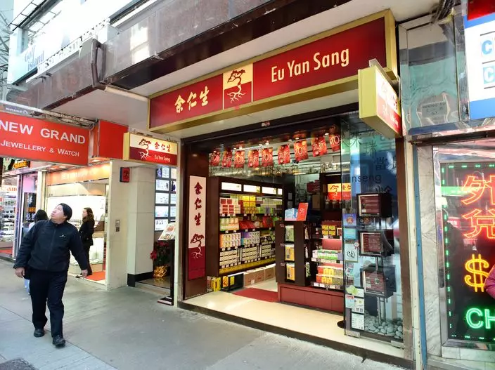 位於漢口道和中間道交界的「余元堂」,面積近千呎,名字似以「余仁生」和「位元堂」聯乘而來,店內售賣多款藥油、奶粉及參茸海味等。記者向一名男店員查問「余元堂」與其他老字號有沒有關連,他答道:「唔關係,我哋都係賣正貨!」