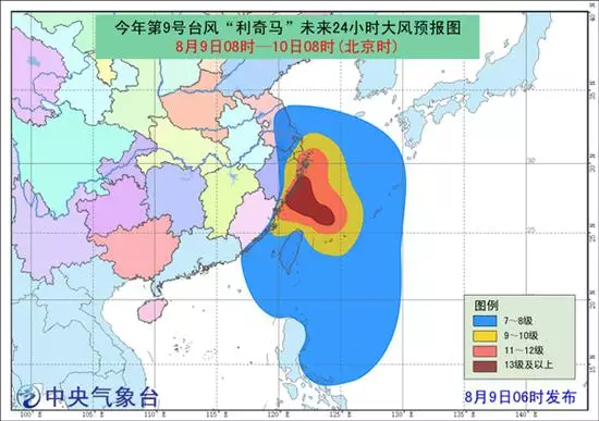 中央氣象台8月9日06時發佈颱風紅色預警: