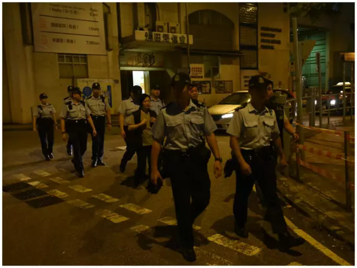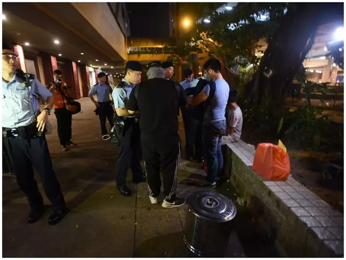 多名軍裝警員上前截查3名黑衣人,並檢查他們手持的元寶等祭品,並指檢查後沒有特別的話,登記資料便會放行,他們有燒衣權利。現場警員又多次呼籲記者保持距離,以免拍攝到黑衣人身份證等私隱。