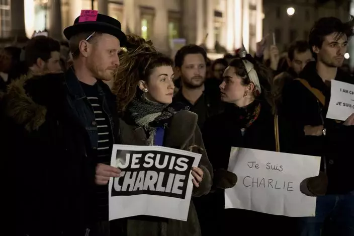 在法國巴黎,大批民眾上街,聚集在發生槍擊案附近的共和廣場悼念。他們燃點手上燭光,手持寫上「我是查理」的標語,向恐襲中無辜死者致哀,並支持雜誌社和言論自由。