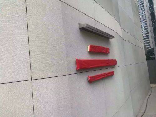 酒店名已「上牆」,目前仍用紅布遮蓋。