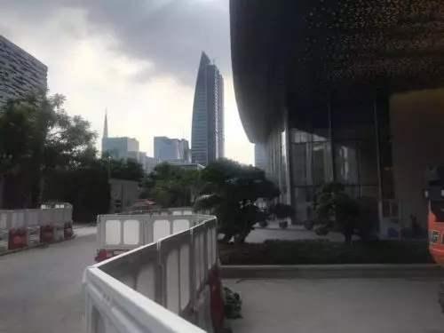 廣州瑰麗酒店將提供七個餐飲選擇,包括咖啡廳、酒吧、大堂酒廊及美食店。中菜廳將設有九間獨立廂房,其中三間為可組合成單一空間的戶外花園別墅式場地,是舉辦慶典的首選地點。位於107樓將設有一所時尚現代的特色餐廳,及一間有雪茄調溫貯藏室和酒窖的天際酒吧,兩者各設有室內及戶外空間。而廣州瑰麗酒店將有全廣州最高的泳池,位於94層,在300米高空游泳將是什麼感覺?等開業之時可以去試一試。走訪瑰麗酒店現場 有望10月份對外營業根據工作人員的指引,CBD君來到了瑰麗酒店的大堂門口。酒店大堂正對大廈停車場及廣州圖書館,出門左轉即是凱華國際中心(珠江東六街),並緊鄰K11藝術中心,周邊儘是廣州市的標誌性建築。