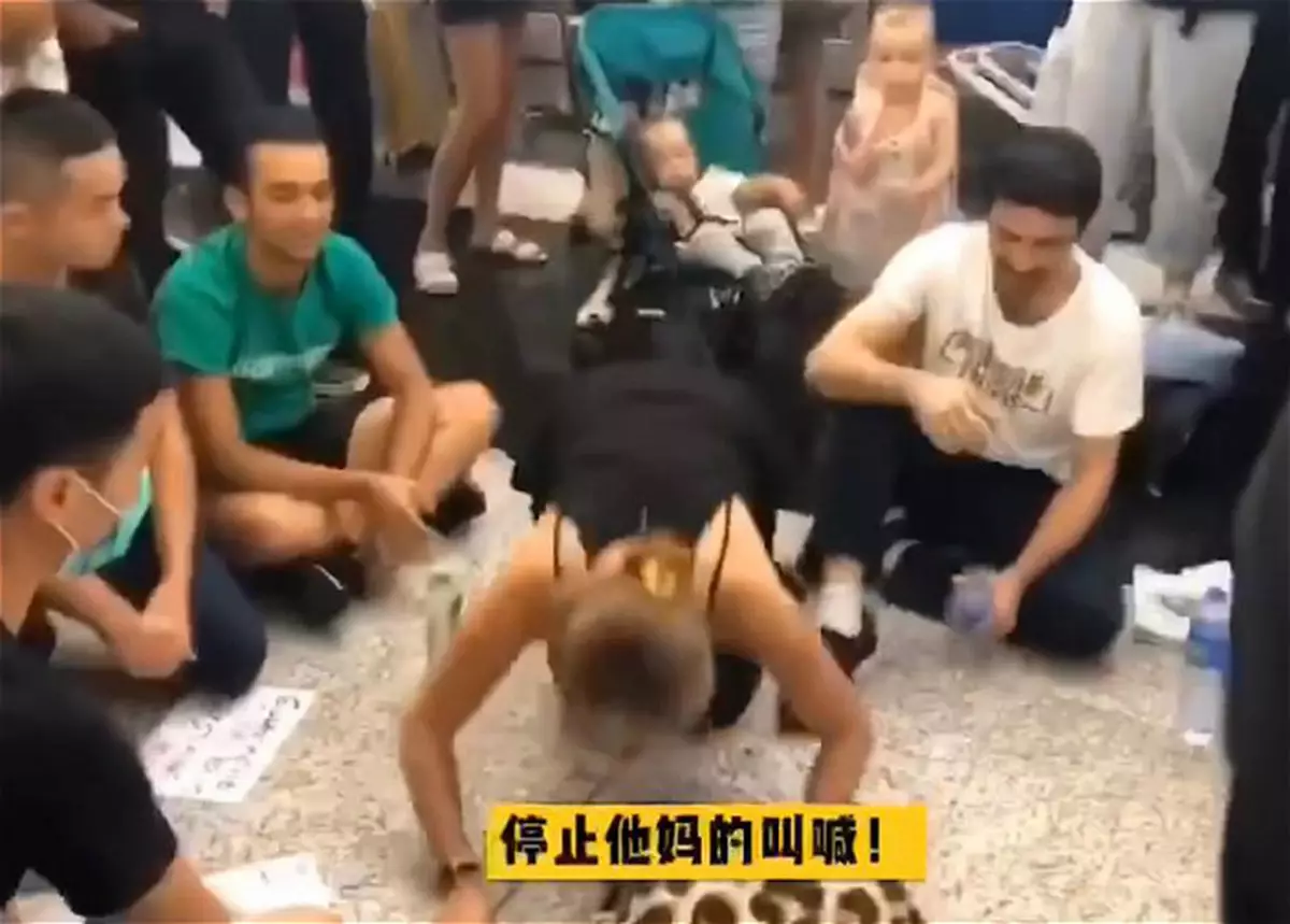 周二(8月13日)機場非法集會,有內地人被示威者暴打,他被指為「公安」,但並無確實證據。該男子被人用索帶綁住雙手,按在行李手推車上並不斷踢打他,也把他的褲子脫了。