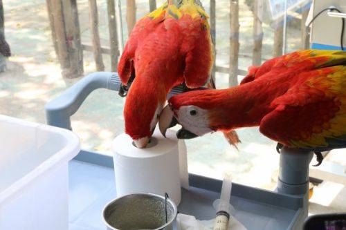 ▲經過四個多月的撫育,鸚鵡幼鳥已開始進食。