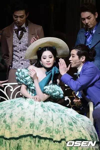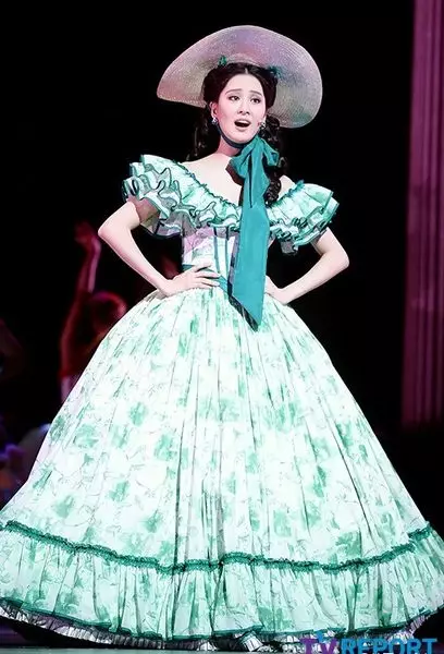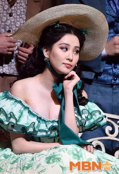 音樂劇《亂世佳人》大會日前公佈多張徐賢的劇照,徐賢一身綠色的鄰家少女形象美麗動人,似模似樣。外型清純的她身材卻十足有料,低胸馬甲讓她的雪白美乳呼之欲出,而她不時彎腰、又唱又跳,視覺效果相當驚人,令粉絲忍不住直呼:「我們忙內長大了!」