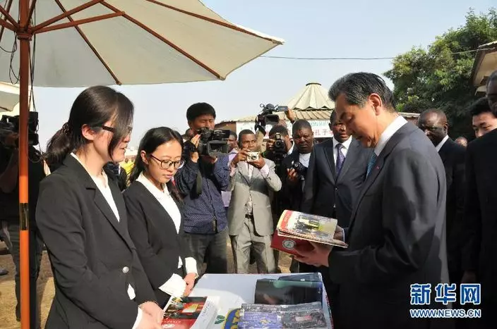中國外交部長王毅出訪喀麥隆,並參觀當地的孔子學院。(圖片來源︰新華社)