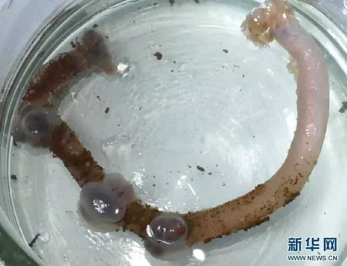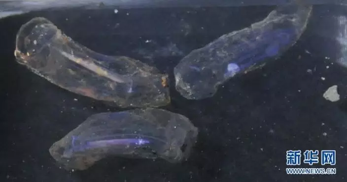 不明透明生物碎成三段(圖片來源:新華網)