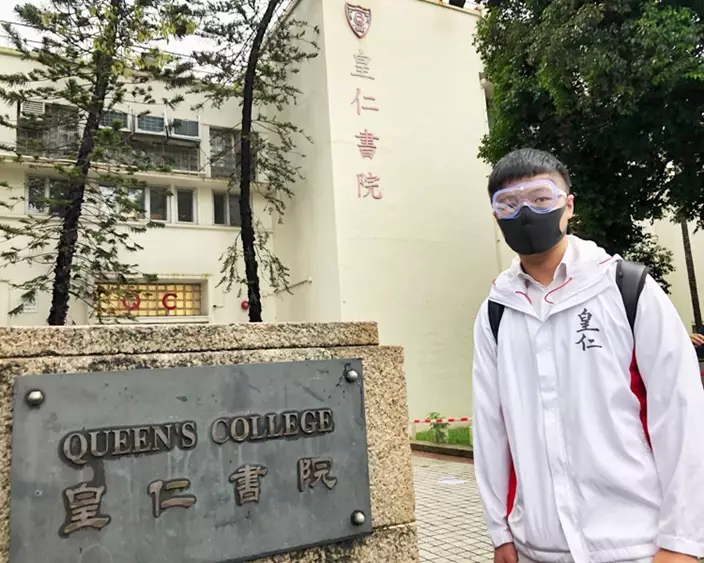 當中約10名身穿校服的學生戴眼罩及「豬嘴」,亦有部分學生戴頭盔及以紗布蓋上右眼,並高呼「黑警,還眼」、「香港警察,知法犯法」等口號。舊生則多穿黑衣、戴口罩及頭盔,有舊生站在校門口派傳單給其他同學。