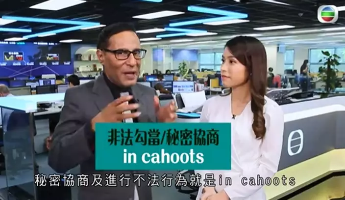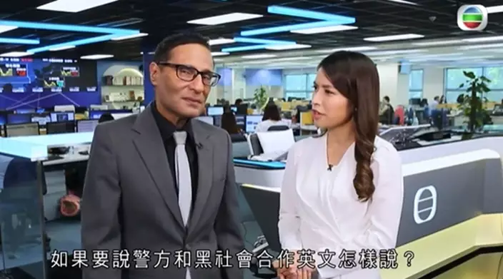 《睇新聞‧講英文》教觀眾如何用英文來表達警方與黑社會合作。節目截圖