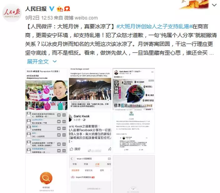 《人民日報》日前發表題為《大班冰皮,真的要涼了》的評論文章,指做餅要先做人。 微博圖片