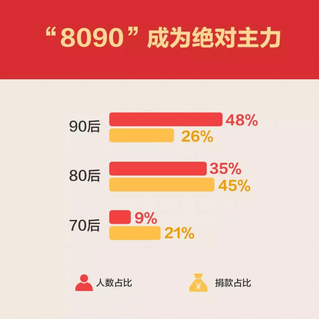 中國青年報(ID:zqbcyol)獲悉,支付寶公益平台數據顯示:80後90後已經成為捐贈主力。