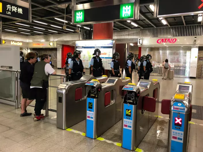 晚上10時許,港鐵將軍澳站有入閘機疑被人破壞,一批防暴警員其後到場。港鐵表示,將軍澳站設施遭惡意破壞,因此報警求助。