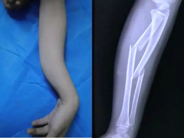 深圳8歲的小琪近日在媽媽的陪同下到遊樂場遊玩,在跳彈床時,一不小心就從一米高的外圍墮下。小琪的左前臂彎曲變形,媽媽馬上將孩子送至深圳平樂骨傷科醫院醫治。隨後,醫生為其做了微創手術,目前小琪已康復出院。