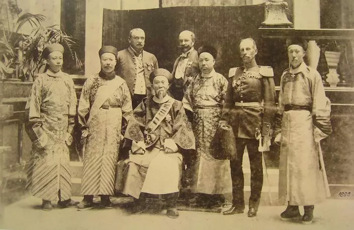 李鴻章1896年出訪外國,黃馬褂就一直穿著。彰顯地位之高,受皇帝的重視 (網上圖片)
