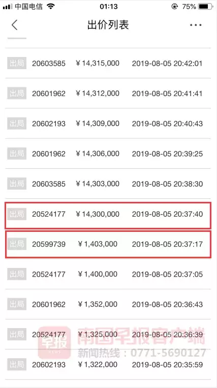 業內人士猜測,第140次出價的競買人應該是想出價1430000元,可能是「手滑」多加了一個“0”,結果將價格一下從140.3萬元拉升至1430萬元。