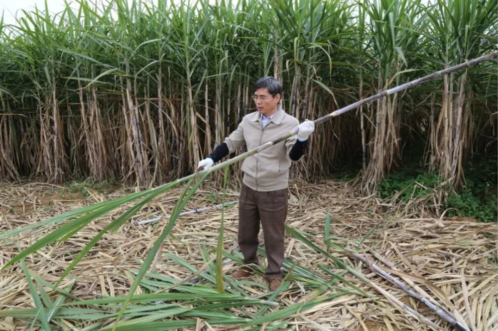 陳保善在田間檢查甘蔗新品種的長勢